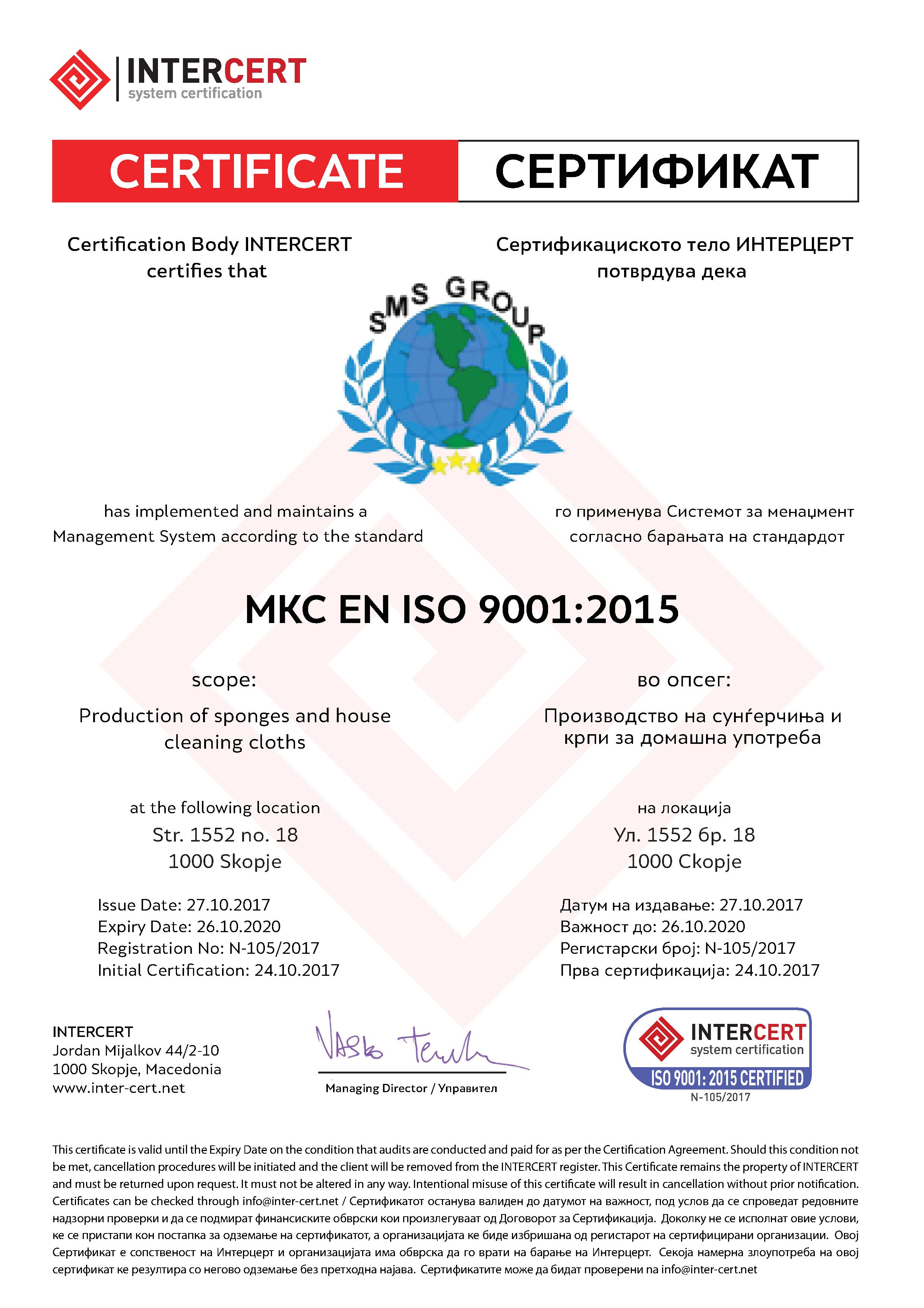 SMS GROUP is family owned company that was founded in 2006 for the purpose of manufacturing household products for both domestic and international markets.We first started with only a few employees.But,with the constant demand for our goods,we expanded our team. And 11 years later we cover 90% of Macedonian market and because the quality of our brand has spread…In 2009 We started exporting our products in :