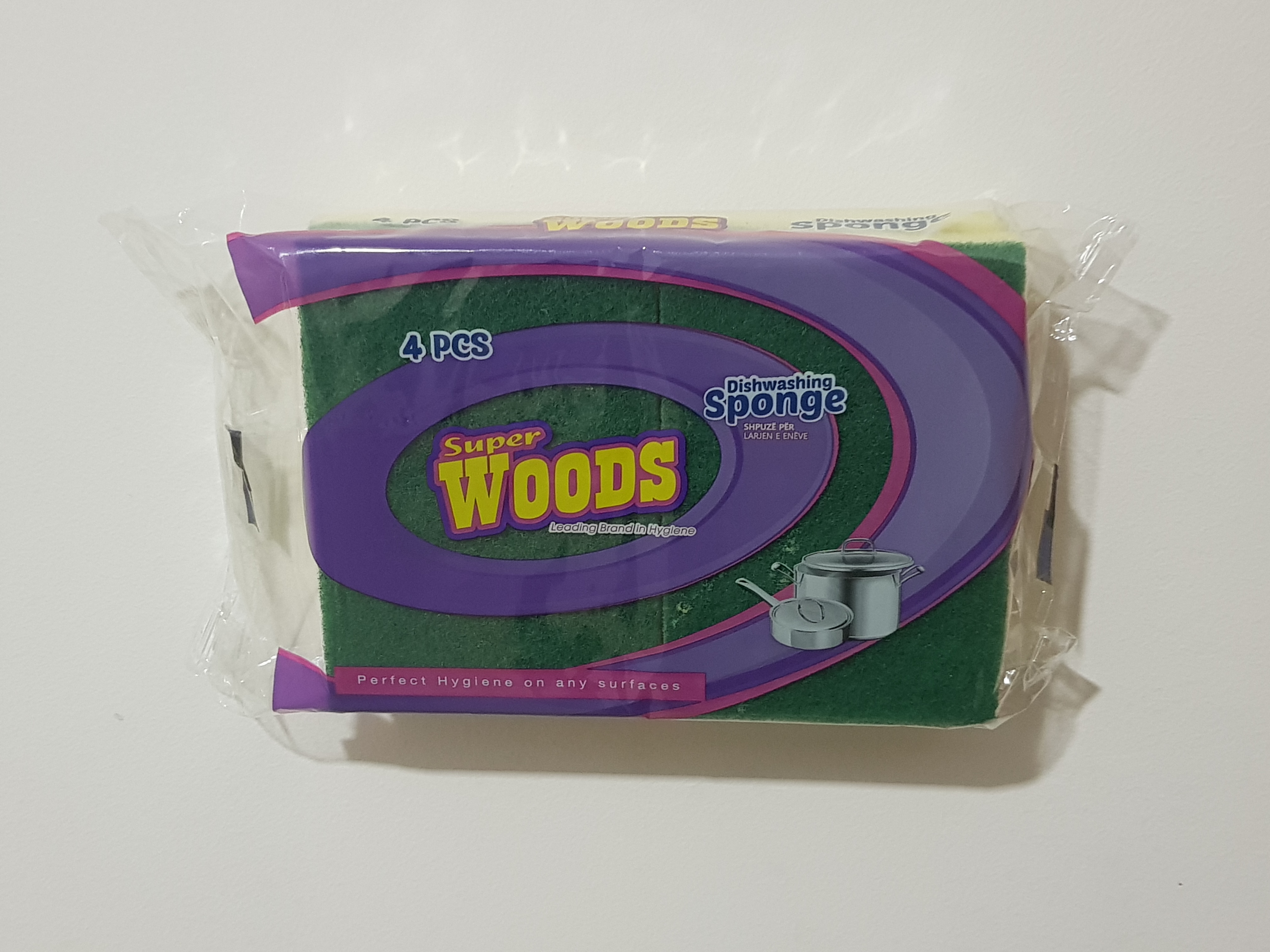 Woods Sponge 4/1 Colour:yellow Width:11cm Height:3cm Length:16cm Volume (L):S18 Material:sponge,abrasive layer Packing: Iner:4 Master:96